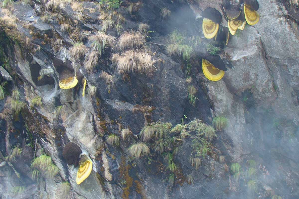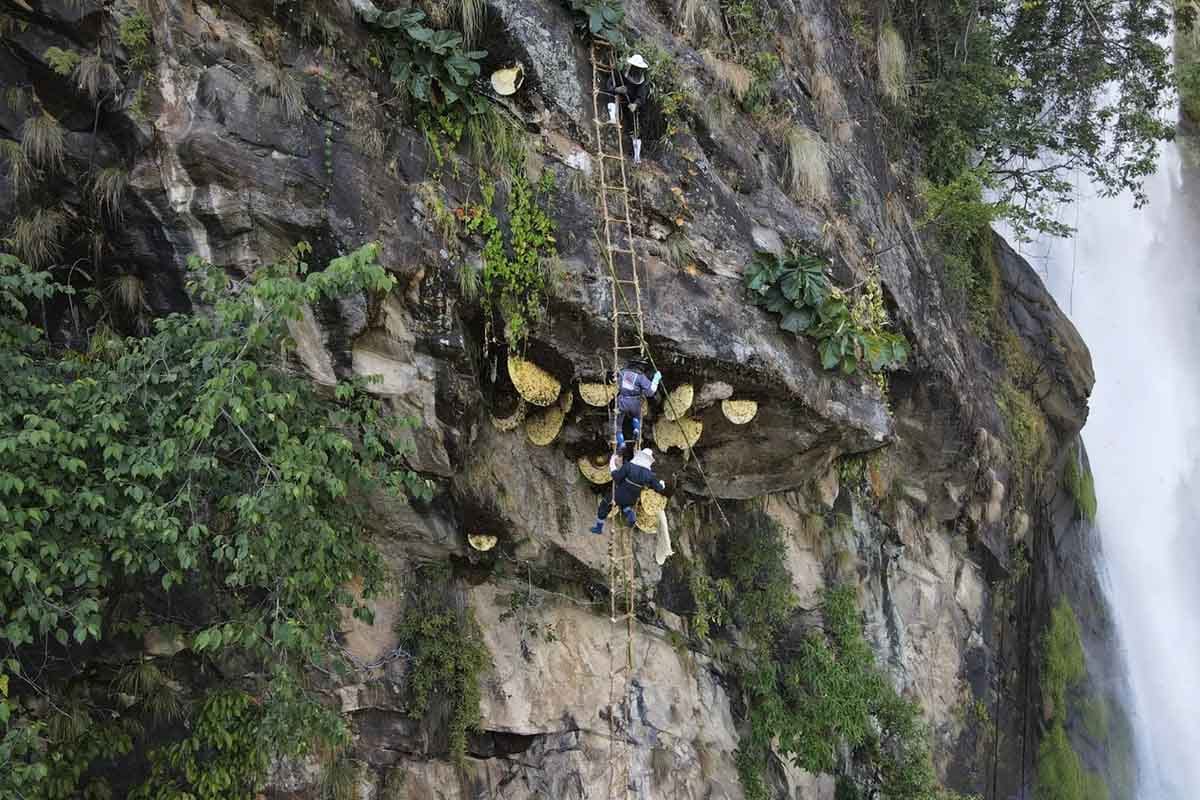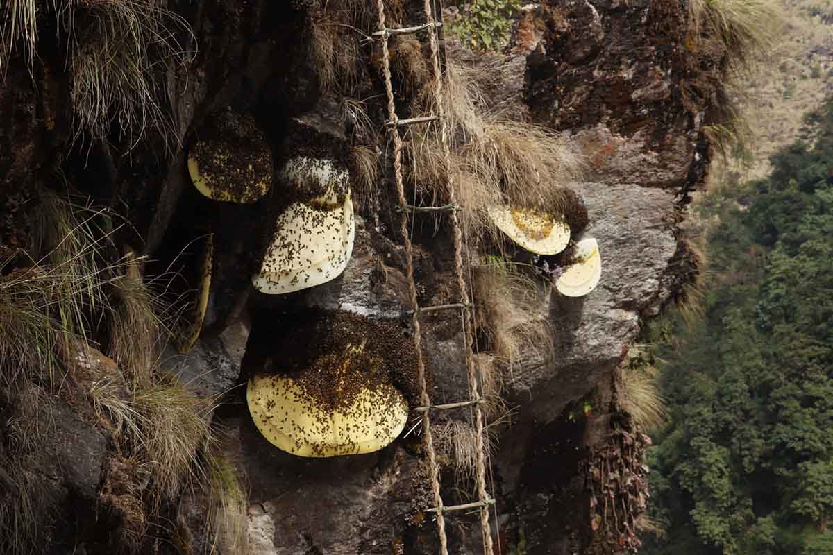 For centuries, the Gurungs and Tamangs of Nepal’s mid-hills have gathered wild honey from combs hanging off precarious cliffs near their villages. The honey sourced from cliffs at higher altitudes is known for its psychoactive properties, while those cut from hives at lower altitudes are renowned for their healing powers.